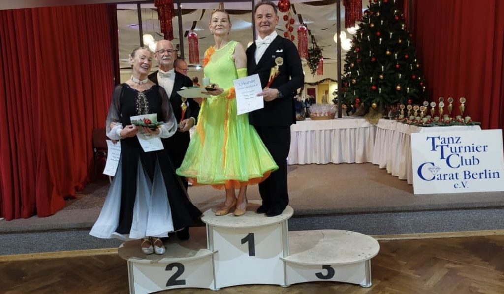 On Sunday standen Dirk und Ramona erneut auf der Fläche. Wieder erreichten sie das Finale – und diesmal legten sie sogar noch eine Schippe drauf: Mit einer überzeugenden Vorstellung verbesserten sie ihr Ergebnis vom Vortag um zwei Plätze und rundeten ihr Adventswochenende mit einem 3. Platz in the Masters III B Standard away.